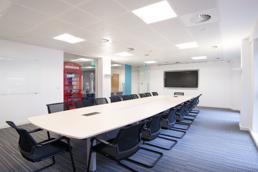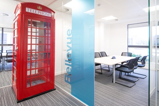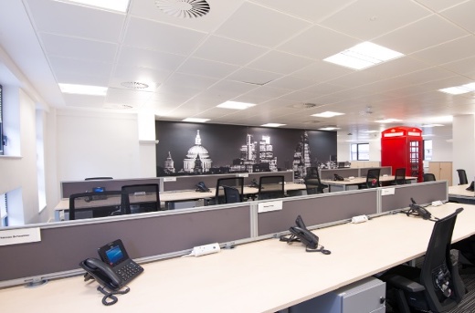 Office Locate created a space that reflected both the global nature of its travel business and its UK location, through striking graphic walls of skylines around the world and traditional red phone booths sprinkled throughout the space.