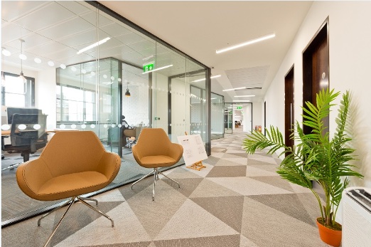 The floor finish set-out which flows in sympathy into the black glazed doors and partitions ensuring continuity in all areas.